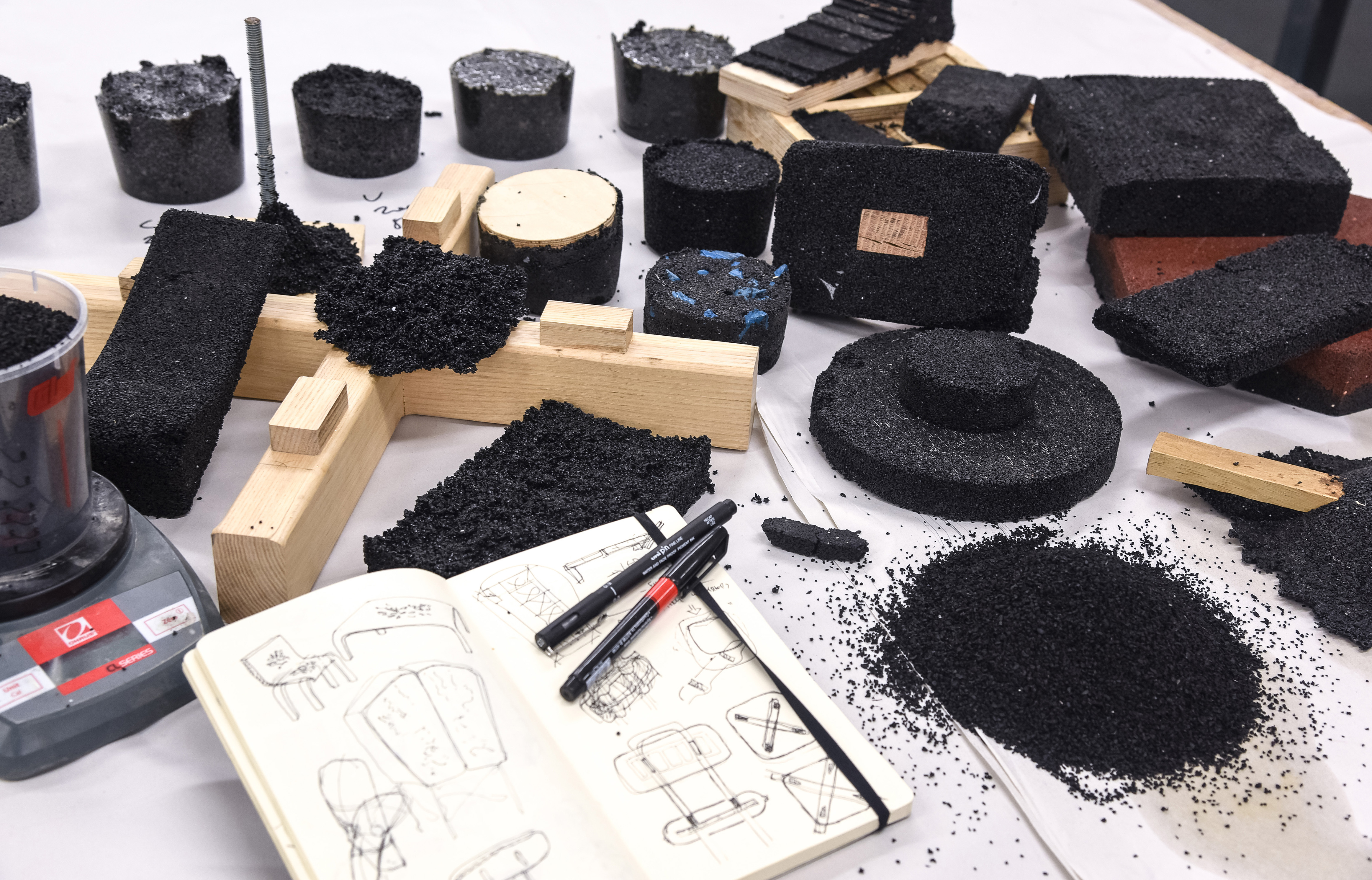 The award-winning designer, architect, and researcher Ammar Kalo describes his work as “interrogating the relationship between digital technology and traditional craft”. From large-scale spatial design projects to small-scale pieces, his creations consistently aim to facilitate a dialogue between materiality and form through meticulous attention to detail. His work has been recognised with multiple international and local awards. Kalo is also an associate professor, where his research and teaching focus on robotic fabrication, furniture design, and design-build courses. Ammar Kalo’s research interests include developing design and fabrication projects that explore the inextricable links between materials, fabrication tools, and form-making. He combines this specialisation with his own creative flair to produce the Fikra Tables and Macaron Seats – two design series that utilise recycled tyre rubber.