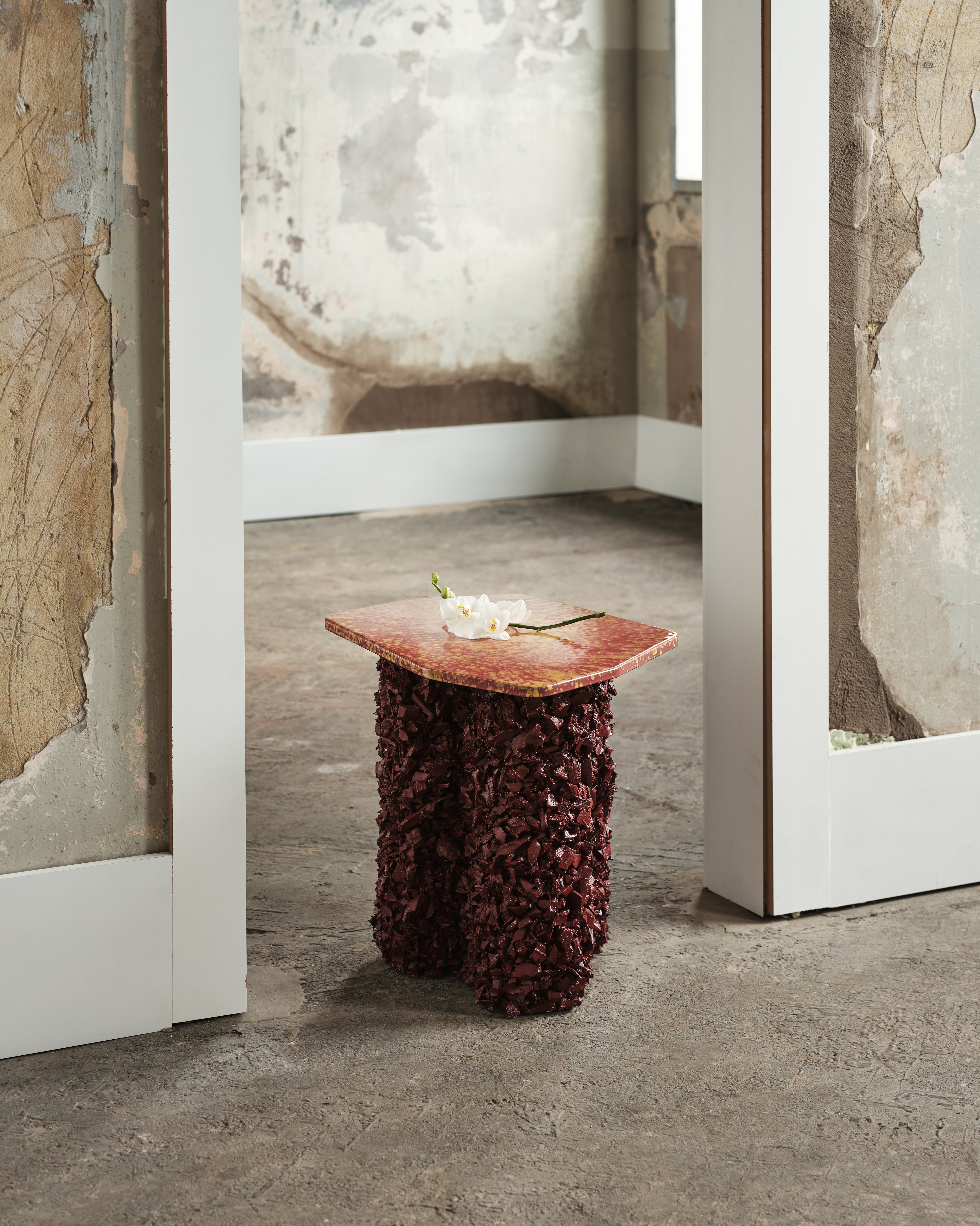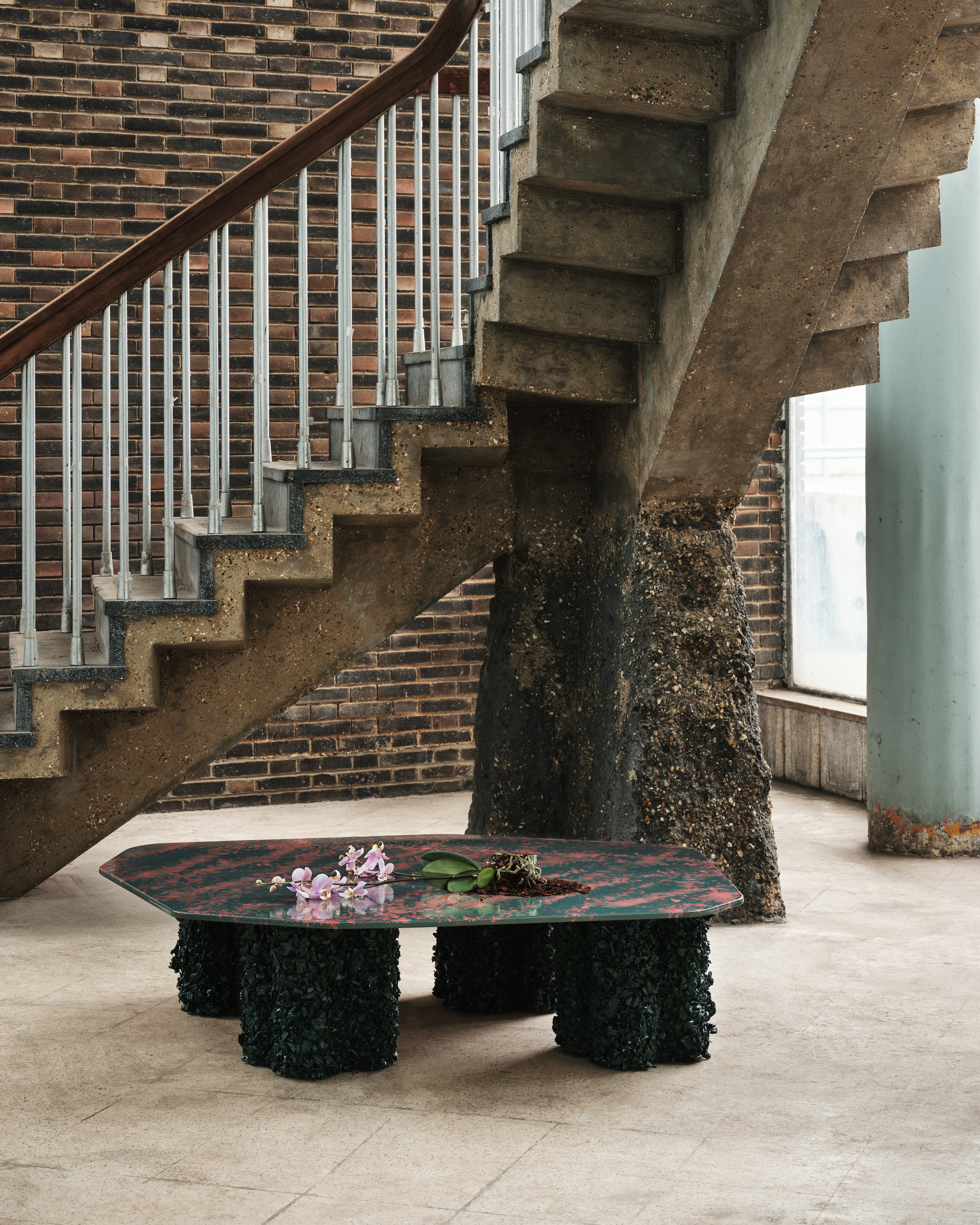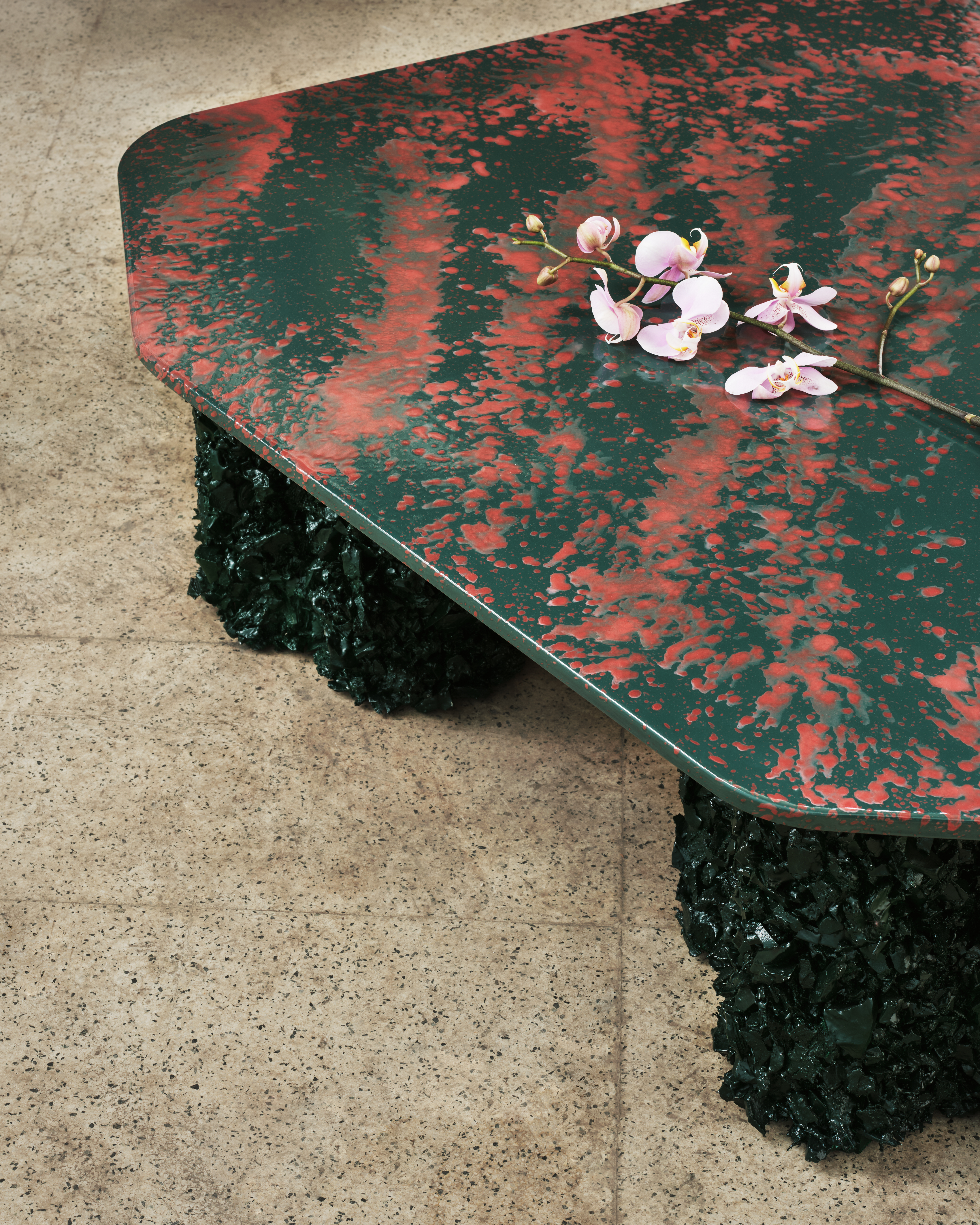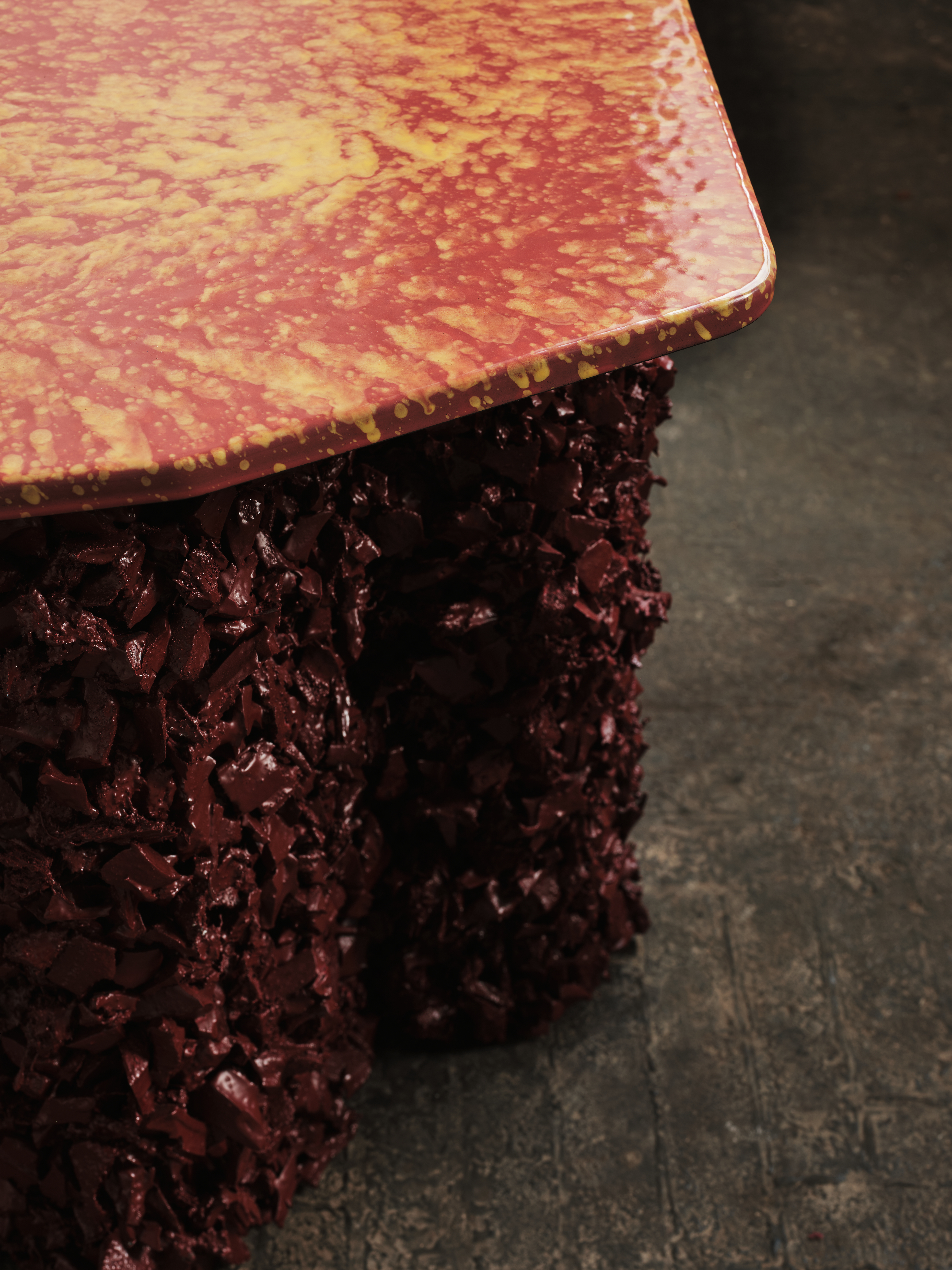 CAN’s Liquid Geology explores the idea of contrast through scale, texture, and materiality. It embodies CAN’s unique studio personality, unencumbered by style and influenced by kaleidoscopic colours, classical art, geography, pop culture, music, and film. The collection was inspired by rugged coastal scenery, underwater deepsea landscapes, and Claude Monet’s 1880s paintings of sunrise and sunset on the River Thames. CAN drew on the rich detailing and colouring of the impressionists’ work alongside the practice’s own ongoing research into geographic contexts to create furniture with an otherworldly feel. The table tops offer a reflective, lightly undulating surface reminiscent of a lake, appearing to float on rocky underwater outcrops, resulting in a collection of sculpture-like furniture designed to intrigue.