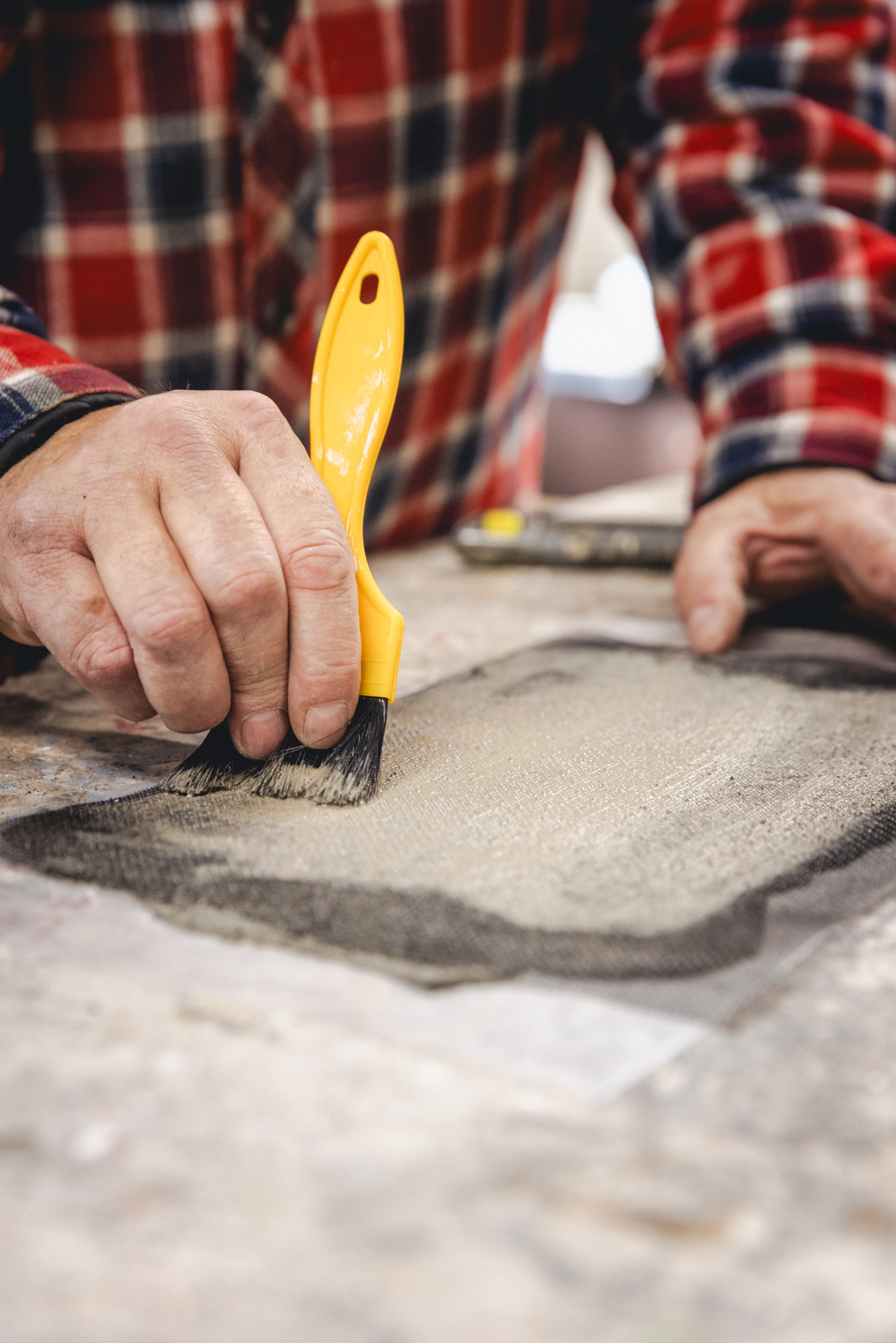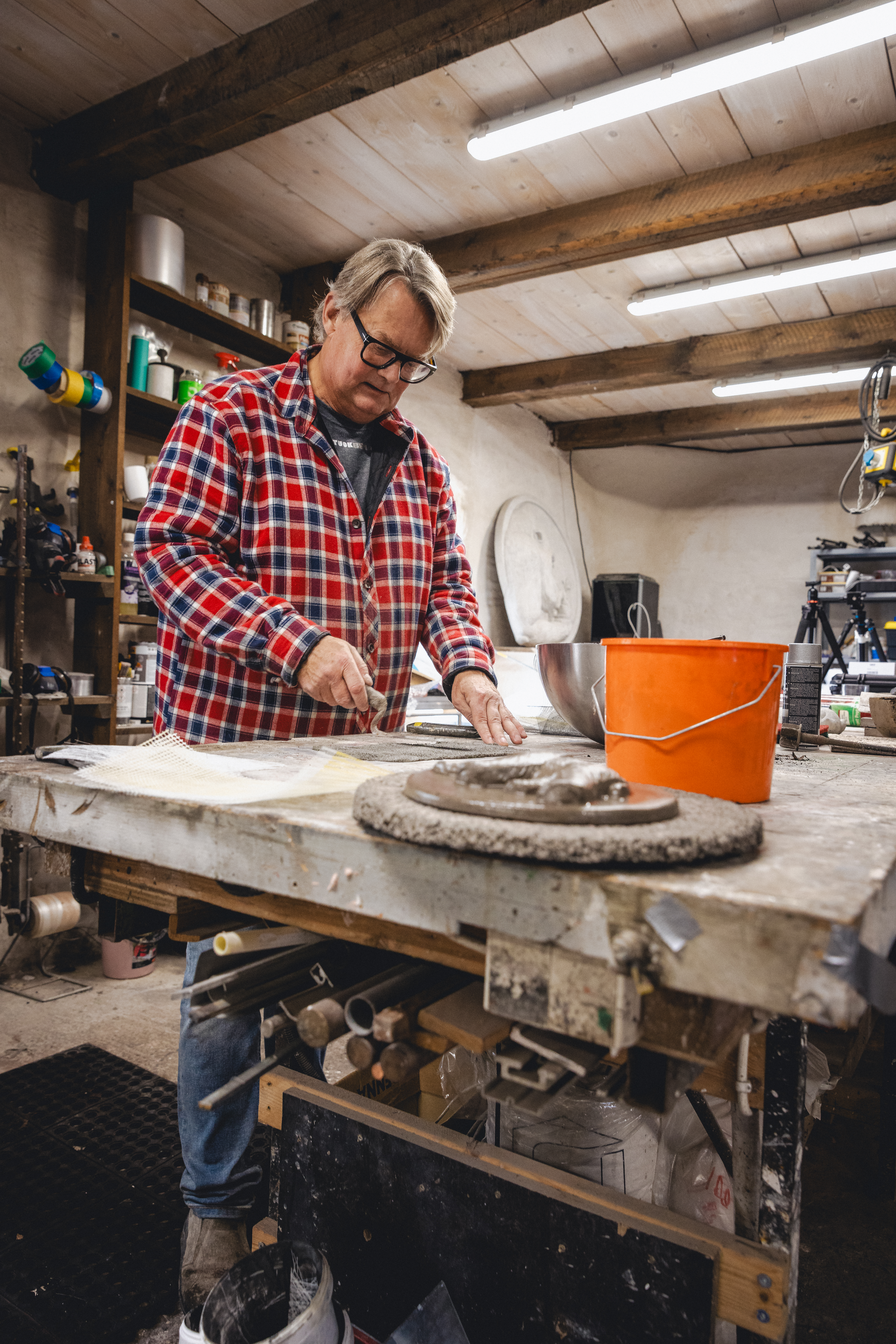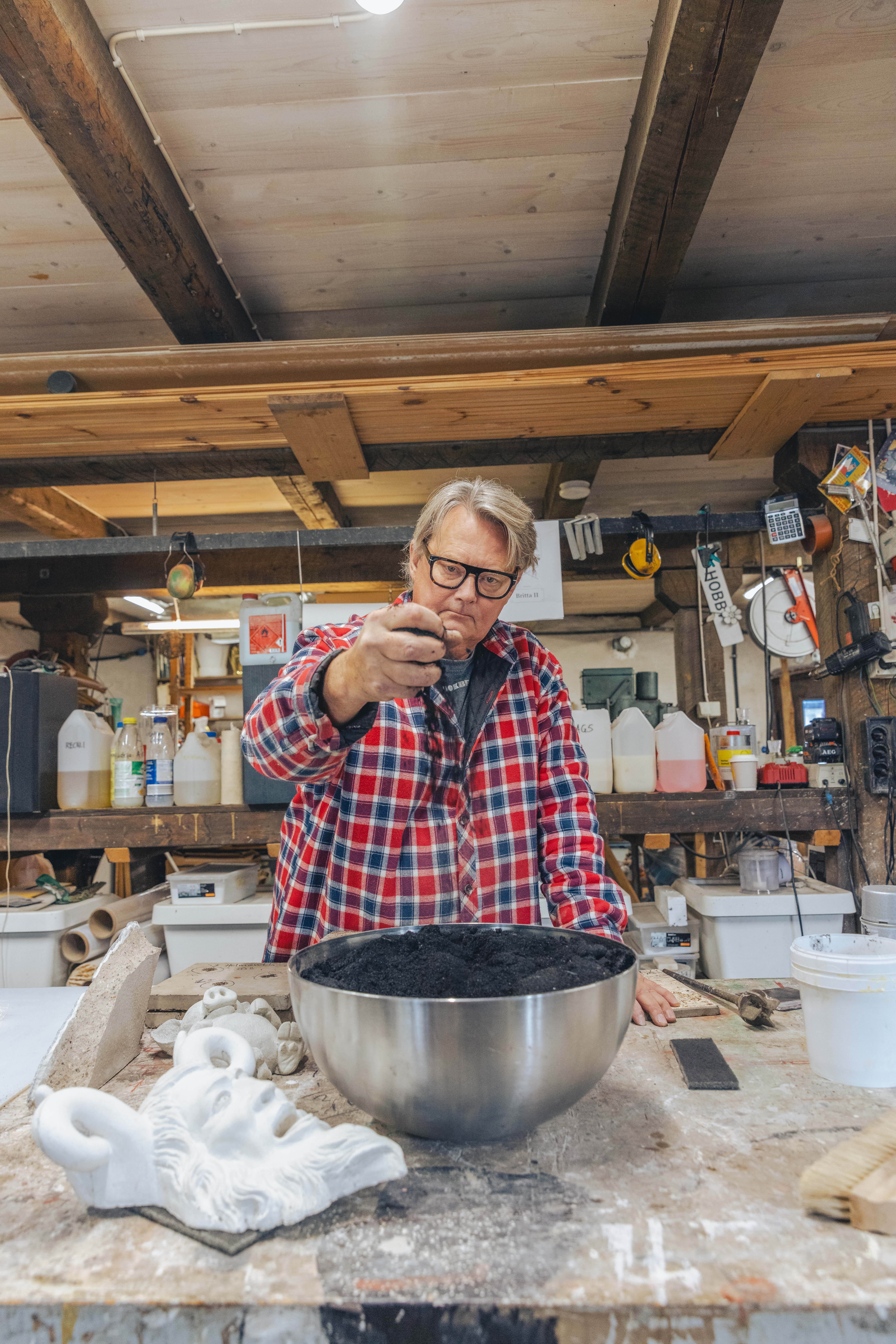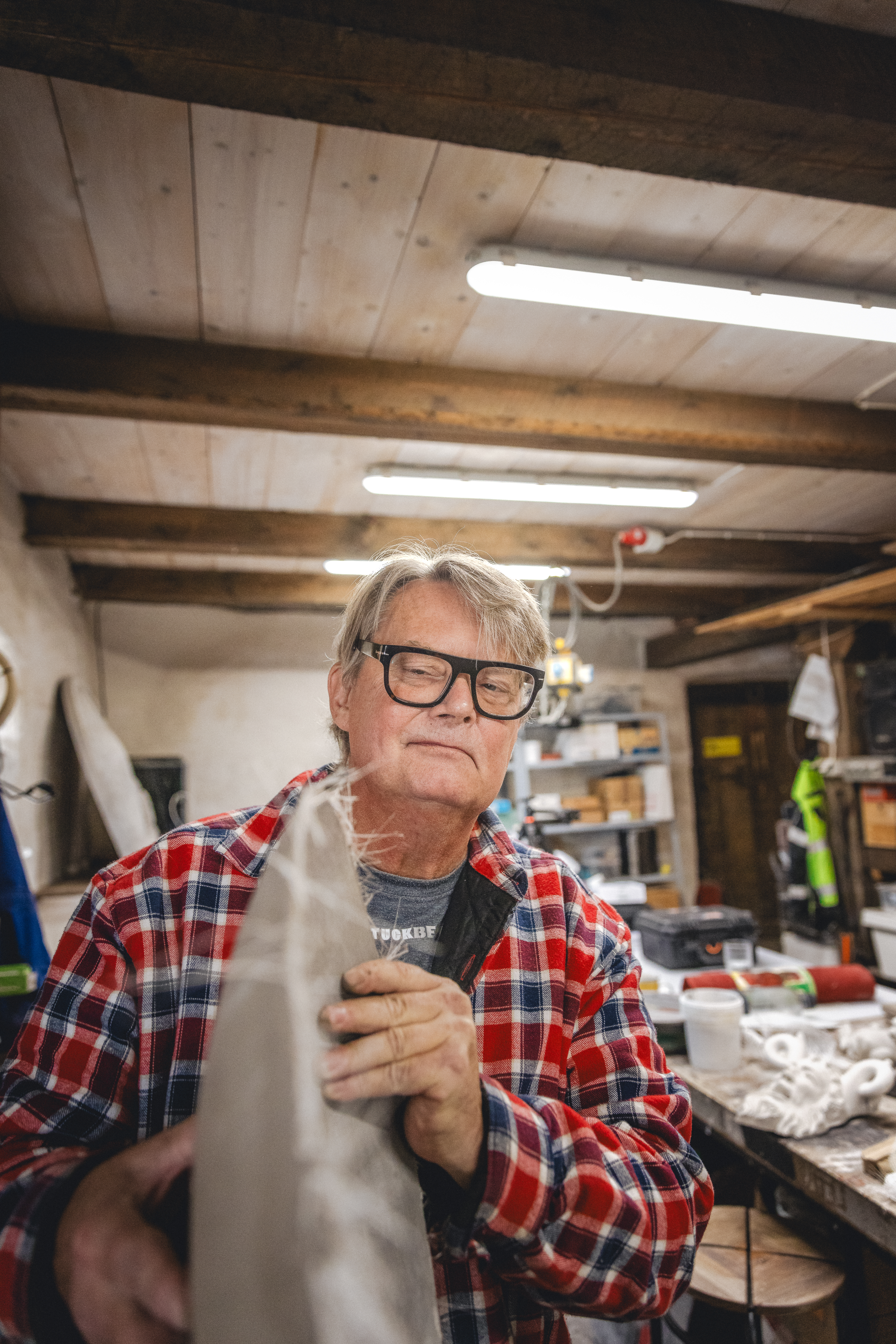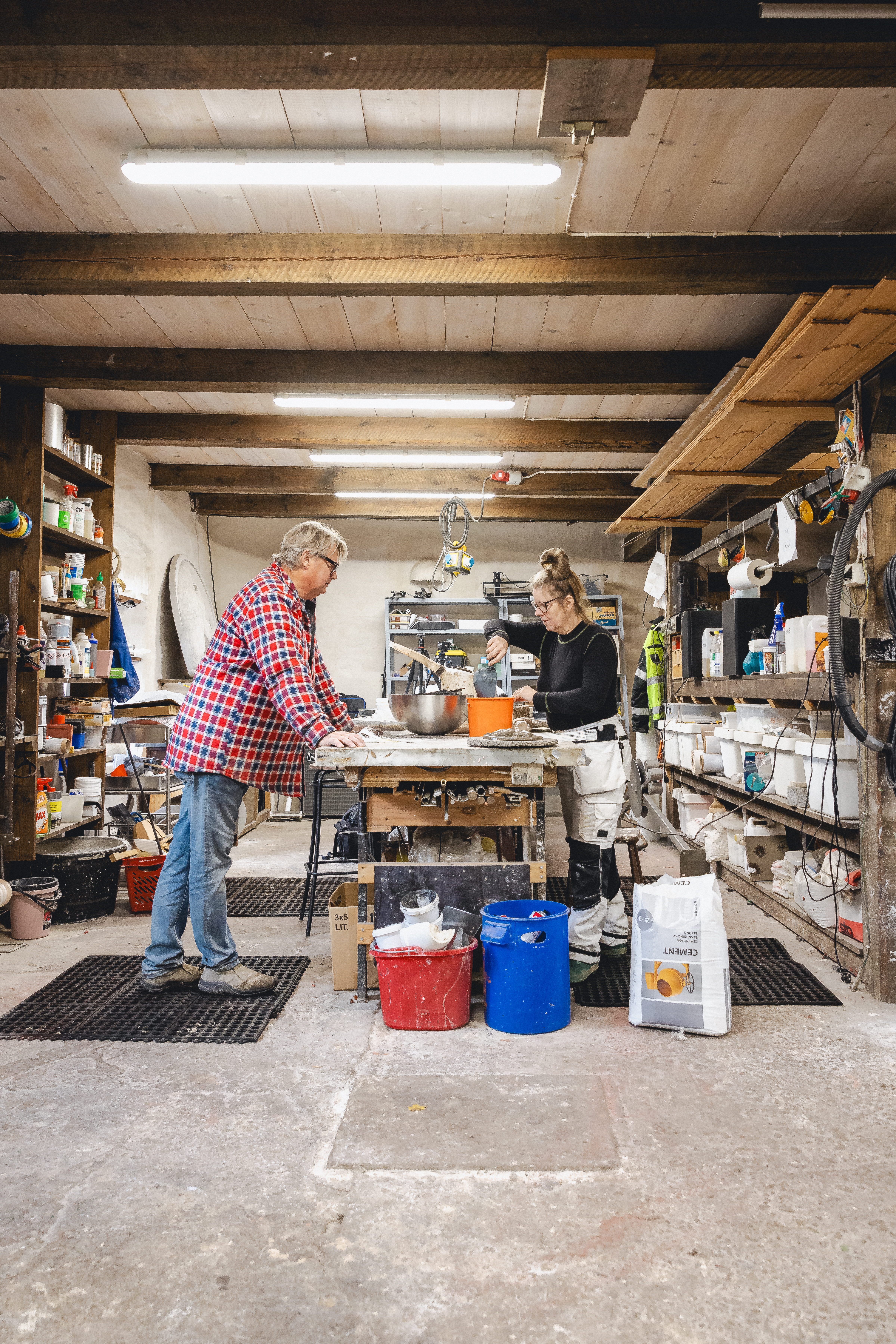 Michel Declercq, described by some as a “material magician” and problem solver, has a deep interest in material science, composite techniques, and environmental issues surrounding industrial production. His expertise is showcased in workshops for artists, designers, and architects, where he introduces them to fibre-reinforced concrete and composite techniques, helping them explore the materials’ practical applications in their projects. While Michel and Ann-Charlott work with a range of materials, they specialise in f ibre-reinforced concrete and composite technologies, allowing for lightweight yet strong, large-scale structures in free forms. In their workshop, they have developed innovative methods and processes, focusing on composite and fibre-concrete as foundational elements in projects, art pieces, and design solutions for their clients.