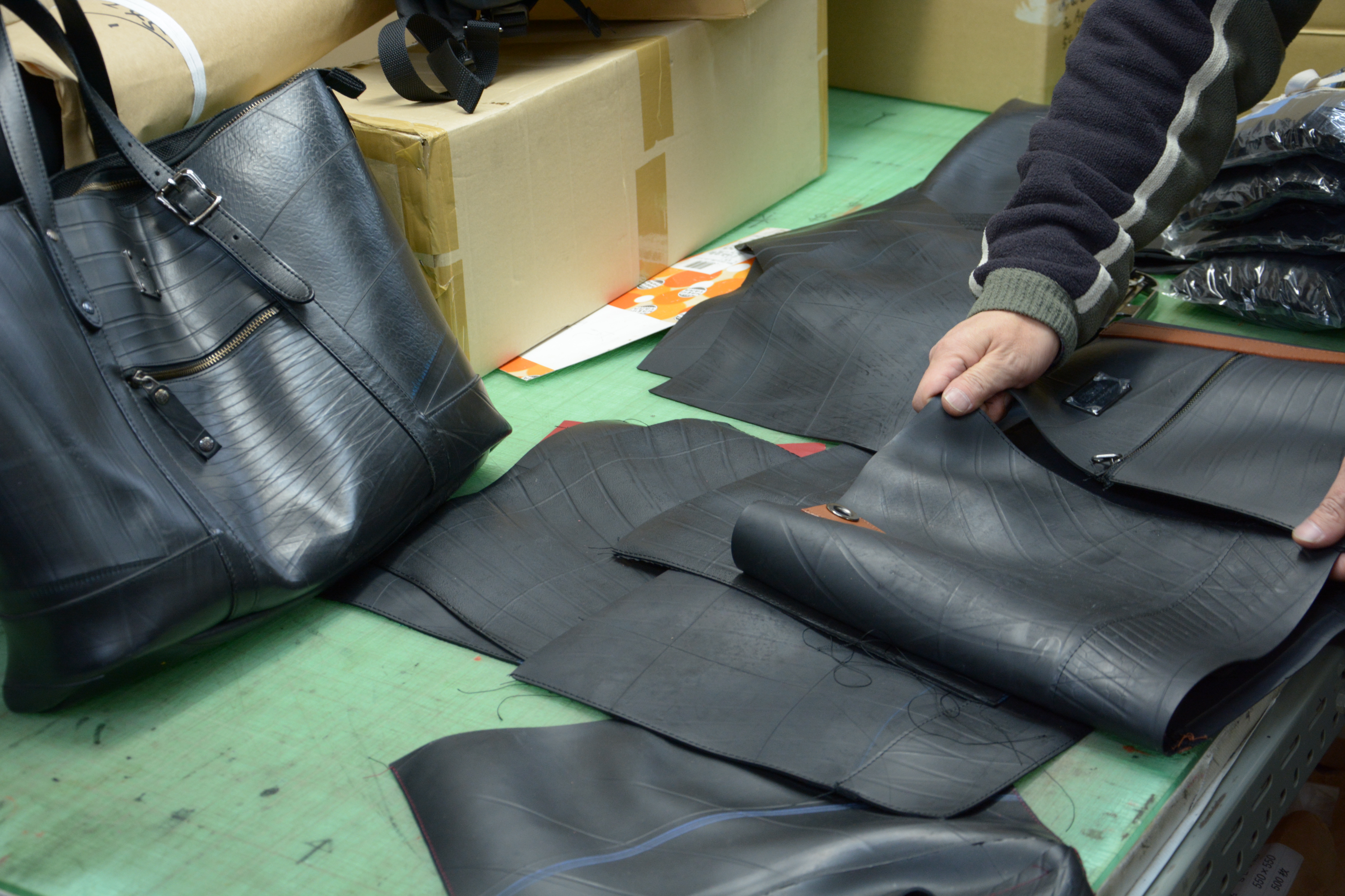 The decision to use waste tyres and invest in recycled tyre rubber regularly was driven by factors such as environmental impact, material volume, and suitability for SEAL products. About 10-20% of salvaged tyre tubes can be used for hand-sewing the bags. SEAL’s production process involves three main stages: salvage, cleaning, and sewing. The entire process, from selecting the material to the final sale, takes approximately 18 months to complete. The result is a product with a distinctly noticeable difference.